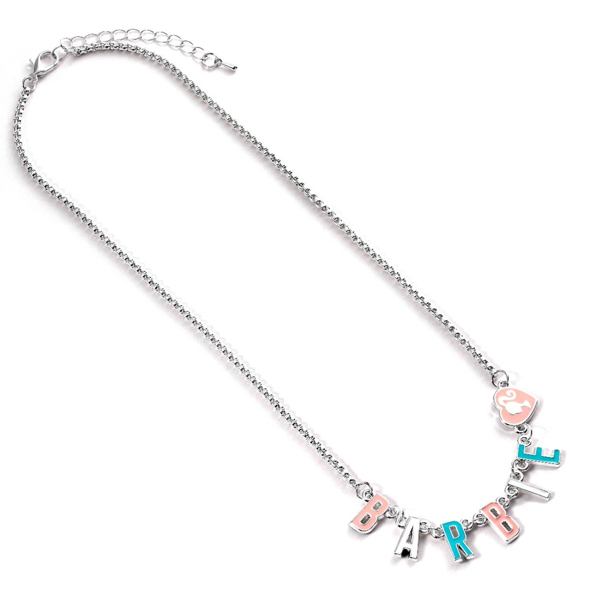 Every story has its name – BARBIE! Spell it out loud and clear with this beautiful necklace featuring pastel enamel letters on a silver- tone box chain.