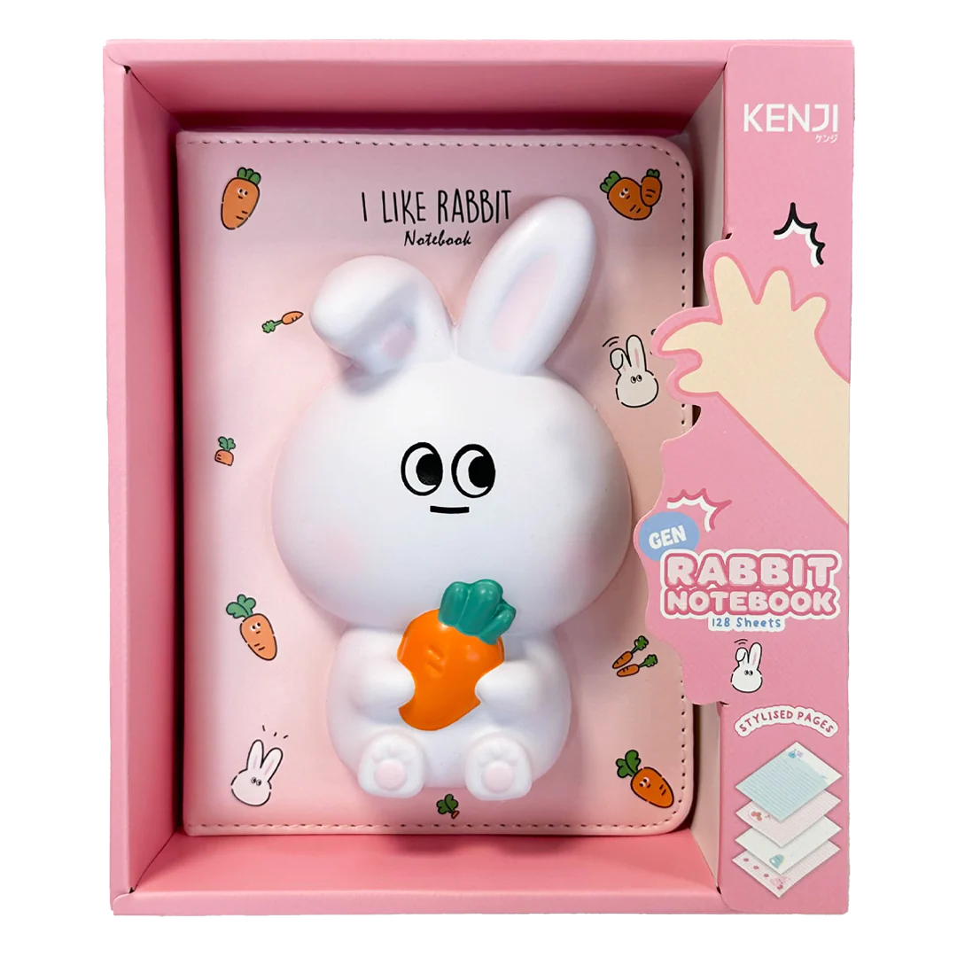 Kenji Gen rabbit notebook with a squishy rabbit front, A5 in size and with the usual Kenji standards, comes with presentation packaging